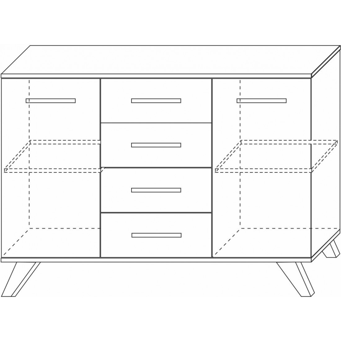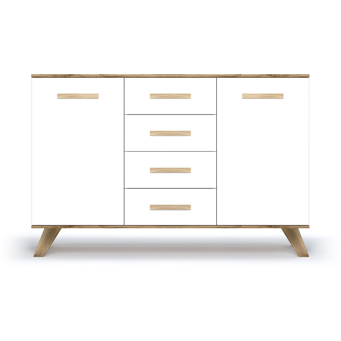 Большой комод серии «Вега Скандинавия» — комод для спальни или гостиной. Можно установить на него телевизор или вазами, рамочками с любимыми фото. хранения обеспечивают 4 выдвижных ящика, а также отделы с распашными дверцами.