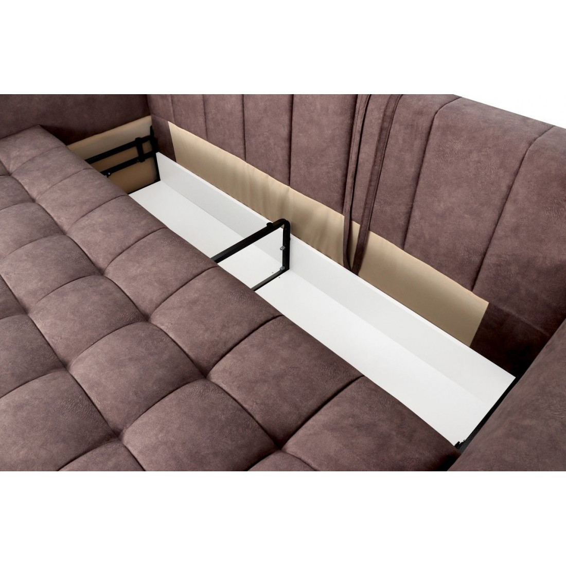 В основании дивана - металлокаркас. Такая конструкция выдерживает большие нагрузки, сохраняя первоначальную форму.