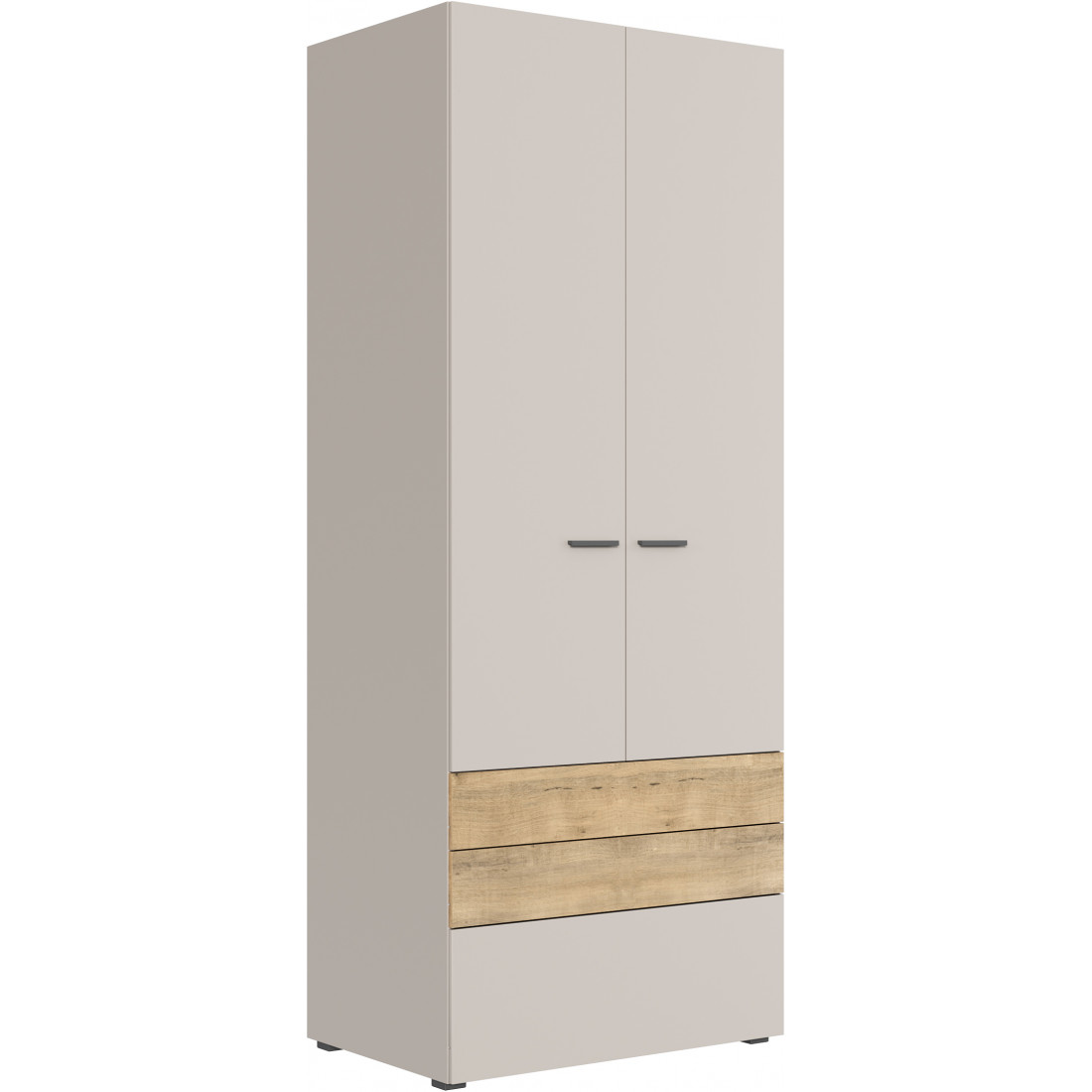 • Шкаф двухстворчатый, укомплектованный полкой, штангой и 3-мя выдвижными ящиками;