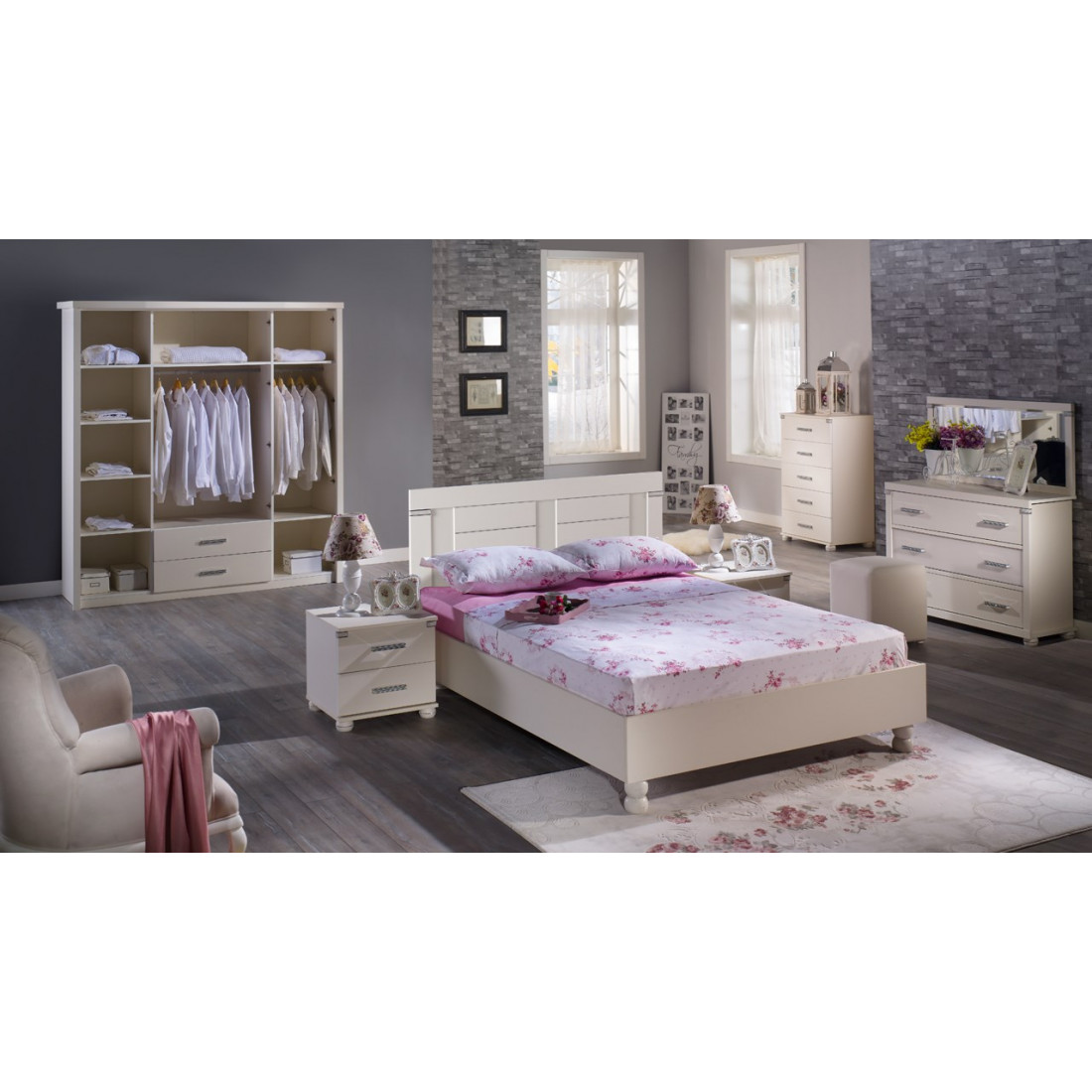 Цветовое исполнение спальни - белая, но он есть также и в других цветах - венге и орех.