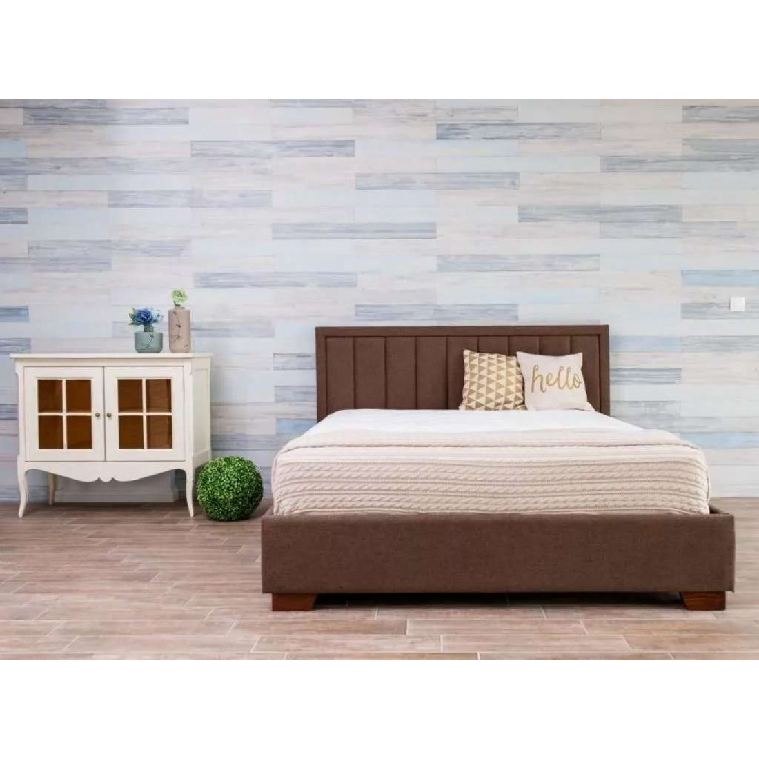 Кровать оснащена встроенным основанием для матраса — прямыми ламелями из березовой фанеры.
