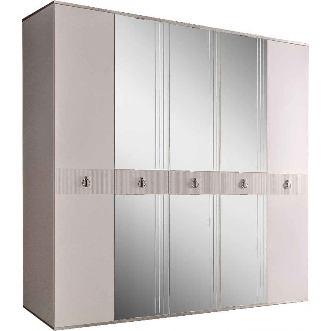Пятистворчатый шкаф для одежды с зеркалом Rimini Solo РМШ1/5 (s) (слоновая кость)