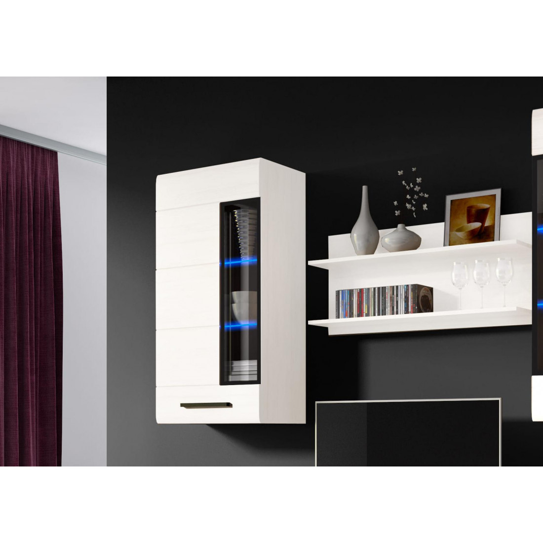 Элегантный шкаф-витрина Кёльн от производителя Мебель Град украсит интерьер вашего дома. Шкаф состоит из одной закрытой секции с тремя полками внутри..