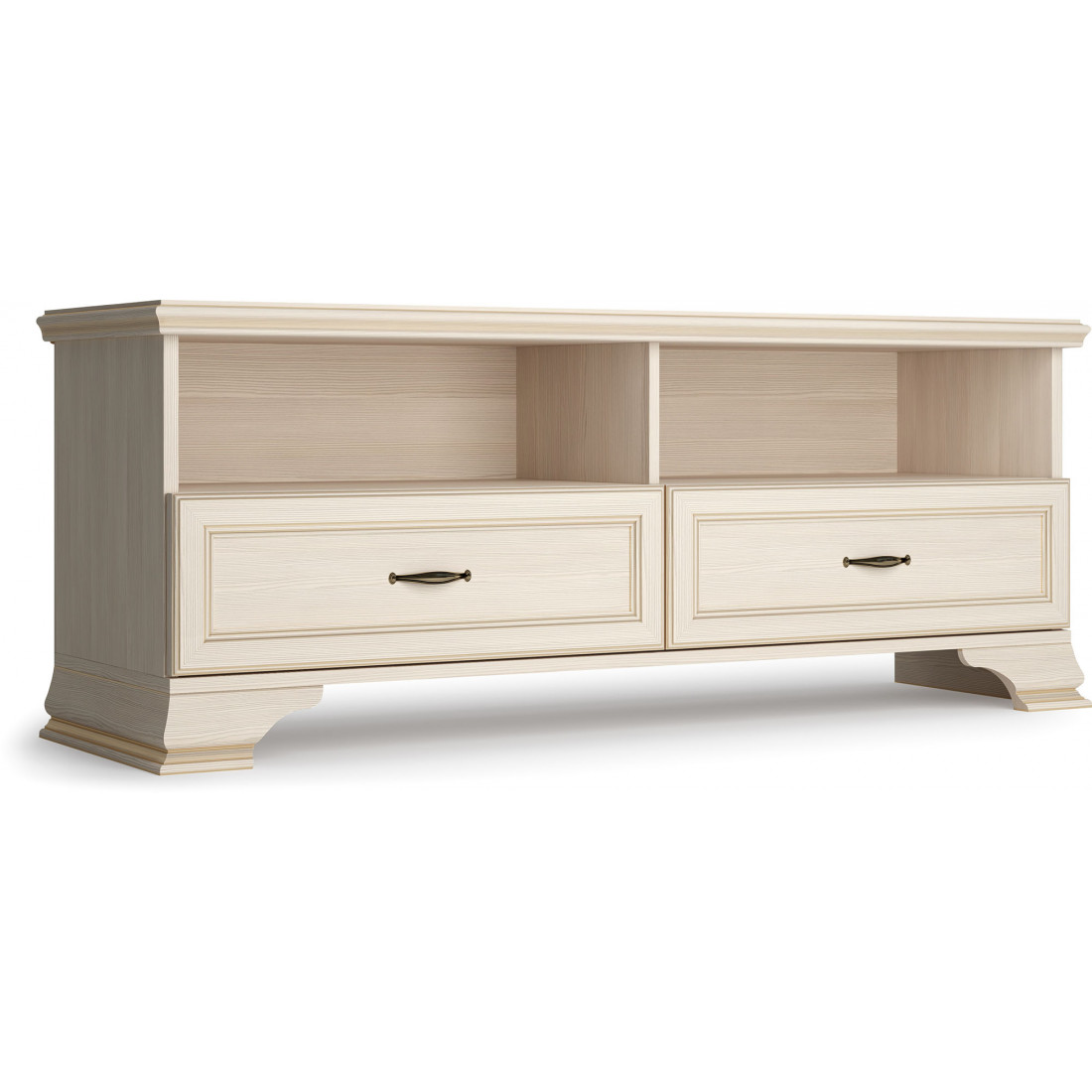 Коллекция производится в текстуре «бодега белый» с эффектом золотого патинирования. Облик «Сиены» дополняют рамочные фасады и карниз в классическом стиле, а также эффектные опоры из МДФ. Мебель комплектуются металлической лицевой фурнитурой премиум-класса в цвете «старая бронза» и надежной крепежной фурнитурой.